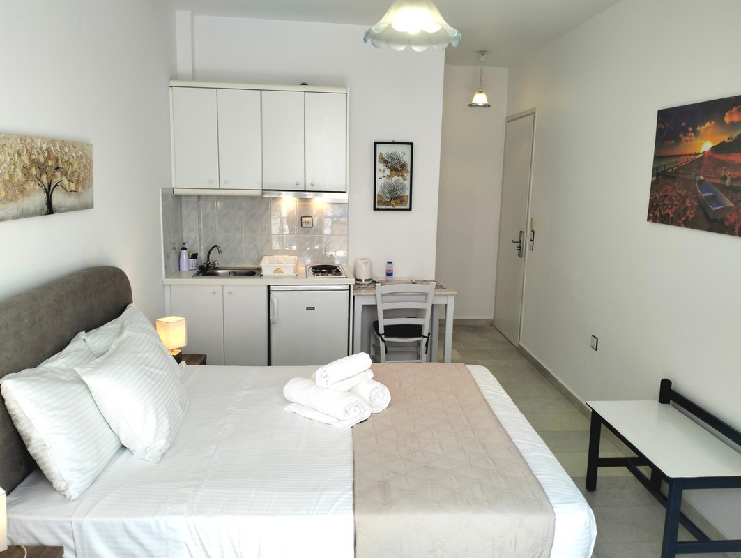 Кондиционер, 1 двуспальная кровать или 2 односпальные кровати, бесплатный VDSL Wi-Fi, Холодильник, полностью оборудованная кухня, Ванная комната с душем, туалетно-косметические принадлежности., Фен, Сейф, балкон или веранда или двор, Дневная уборка номера